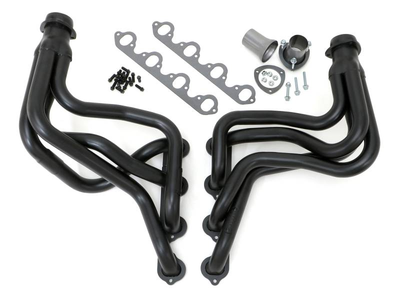Long-Tube Headers For 83-87 Ford 2WD/4WD F150-F350 Trucks w/460 (non-EFI) Handcrafted, Mild Steel Construction. Long Tube Header Design Provides Excellent Top-End Horsepower and Torque. Ball & Socket Collector Design requires No Gasket, and Allows For More Exhaust System Misalignment than Old School, Gasket-Style Header Collectors Includes All The Necessary Mounting Hardware, Gaskets and Reducers (exhaust adapters) Limted Lifetime Warranty On Construction, Five Year Warranty on Factory-Applied Header Coating!