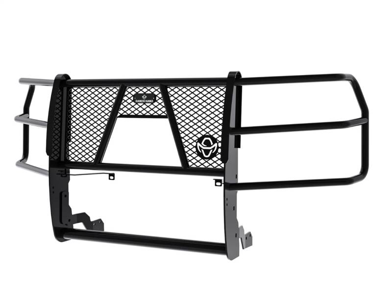 The Ranch Hand Legend Grille Guard is the icon of the vehicle protection aftermarket industry. The quality and the style of the Ranch Hand Legend Grille Guard is unmatched. You need the peace of mind that when you are out on the road, you have done everything you can to protect your vehicle and your family. Providing outstanding protection, the Legend Grille Guard has a one piece fully welded construction and is frame mounted in four locations for maximum strength and to eliminate vibration.The grille guard is constructed from 12 gauge tubing and has 5/16in. upright thickness and features punched grille inserts specifically designed to match the make and model of the vehicle - no expanded metal used. All Ranch Hand products are finished with a durable black powder coat paint. Most applications allow you to maintain factory tow hooks.