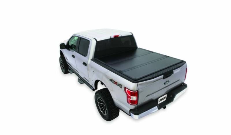 Tonno Pro's new UltraFold Hard Panel Tri-folding Tonneau Cover features a secure and sleek low-profile design. Its lightweight aluminum panels with fluted polymer core provide strength, durability and security, while the lightly textured matte-black powder-coated finish complements OE components. Proprietary seals protect the bed from weather and road debris. Made in the USA, UltraFold comes fully assembled, installs in ten minutes or less without drilling and supports up to 350 lbs. evenly distributed.