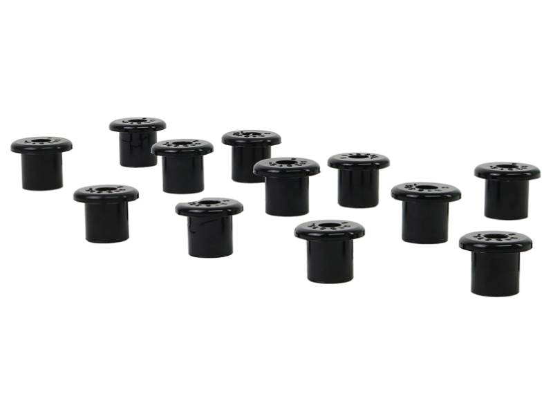 A critical service item for any leaf sprung vehicle. High kilometers and heavy load carrying causes excessive wear on rubber bushings. Whiteline's signature red bushings are made tough and offer outstanding abrasion resistance, high load bearing capability (4WD?s, utes and towing), flexibility, increased tensile strength and chemical resistance to oil, grease, ozone and weathering.