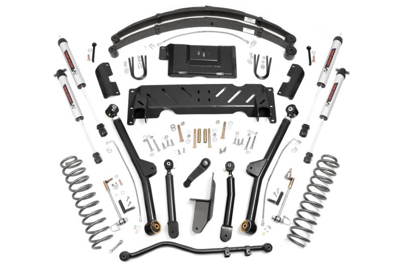 Unleash Your XJ's Full Potential: Take your Jeep Cherokee XJ's already capable platform to the next level with Rough Country's 4.5-inch Long Arm Suspension Kit. This fully bolt-on upgrade relocates the front control arms to achieve optimum alignment angles while delivering insane articulation for superior off-road performance. Engineered for Maximum Strength: Featuring heavy-duty high-clearance lower control arms and extreme-travel long arms, this system keeps your suspension geometry dialed in while boosting ground clearance. X-Flex control arms are equipped with Clevite OEM-style rubber bushings and oversized flex joints with a massive 2.5-inch body and 1.25-inch threads. Fully greasable and built for longevity, these arms allow upper joints to pivot up to 20 degrees and lower joints up to 35 degrees, perfect for conquering uneven terrain.Premium Shock Performance: Choose from Rough Country's advanced shock lineup, including N3, V2, or M1 monotube options, each engineered for a perfect balance of on-road comfort and off-road control. All shocks feature 10-stage variable valving, a high-pressure nitrogen charge, durable 18mm spring-loaded piston rods, and oversized shock bodies for faster cooling, enhanced ride quality, and long-lasting durability.Customize Your Ride: Available with add-a-leaf springs for a cost-effective lift or full replacement leaf packs for premium ride quality and strength.Unmatched Value: Get top-quality craftsmanship, extreme off-road capability, and long-lasting durability, all at an unbeatable price backed by Rough Country's trusted reputation.