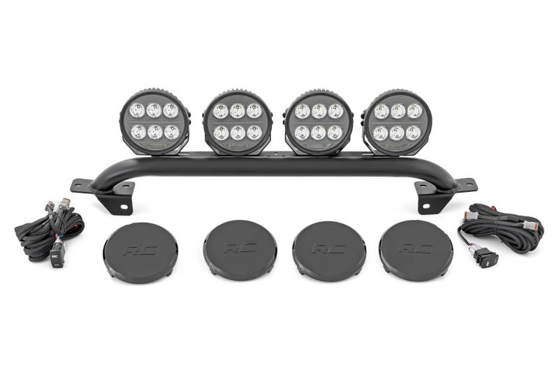 Late-night adventures or early-morning hunts just got a whole lot brighter. Rough Country's Ford Bronco Light Bar Mount is designed to seamlessly fit your factory Modular bumper, enhancing both style and functionality. Illuminate the trail, spotlight your campsite, and tackle any off-road challenge with confidence.Precision Fit & Versatile Design: Custom-built for the Bronco OE modular bumper, this mount can be used as a sleek low bar option without lights for a clean, aggressive look, or equipped with lights to maximize visibility. Your Bronco, your way.Ample Lighting Capacity: Holds up to four of the 6.5" round lights or six of the 3.5" round lights, giving you the flexibility to light up the trail or your campsite. Optional setups deliver up to 28,080 lumens with 6.5" lights or 9,720 lumens with 3.5" lights.Heavy-Duty Construction: Crafted from 11-gauge steel with a 1 7/8" OD tube, this mount is built tough to withstand the rigors of off-roading, ensuring your investment lasts as long as your adventures.Simple, No-Hassle Installation: Bolts directly to factory mounting points with no drilling required. Spend less time installing and more time exploring.Durable, Long-Lasting Finish: Coated to resist rust and corrosion, keeping your mount looking great and performing at its best season after season.Whether you're conquering rugged trails, fishing at dawn, or camping under the stars, the Rough Country Ford Bronco Light Bar Mount ensures you won't miss a thing. Rugged, functional, and ready for adventure, upgrade your Bronco and light the way today!