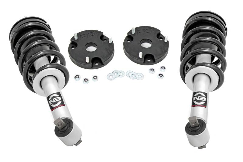 Superior Lift Solution. Looking to add some serious attitude to your Chevy/GMC SUV? Rough Country's 2-Inch Lift Kit is just what you need. This lift kit gives your 4Runner a meaner, lifted, and level stance while providing a smooth ride for unmatched highway and trail performance. It also adds room for larger wheels and tires, so you can make your truck stand out from the crowd. With excellent ride quality and handling characteristics on the road, this lift kit is the perfect way to take your Tundra to the next level.High-Quality Construction. Rough Country's 2-Inch Lift Kit for the Chevy/GMC SUV's makes it easy to gain that much-needed ground clearance and run up to a 33" tire for that aggressive look you want! Designed to provide excellent ride quality width and factory alignment specs, this kit boasts premium components, giving you a higher quality lift on your SUV. The high-quality components and innovative design provide the strength, stability, and up-travel you need to conquer almost any terrain.Installation and Warranty. Our 2-Inch Lift Kit includes all the components you need for installation, including front struts, rear strut spacers, and the necessary hardware for installation. When you purchase a Rough Country product, you get more than a great product at an affordable price. You also get peace of mind knowing that your purchase comes with a limited lifetime replacement warranty for manufacturer defects. With Rough Country's industry-leading warranty, you can be sure that your Rough Country lift kit is protected from structural and workmanship damage after the date of purchase.