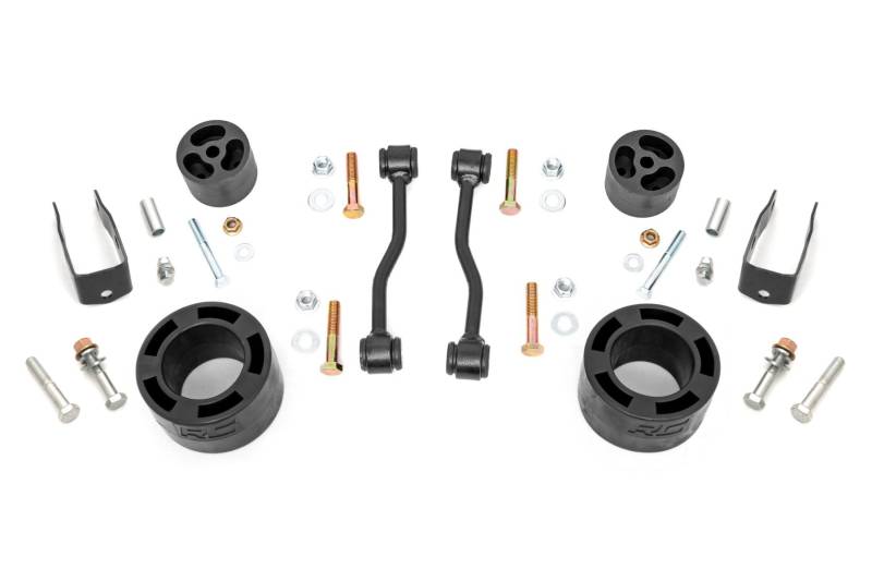 Take your Jeep Gladiator JT to the next level with Rough Country's 2.5-inch Suspension Lift Kit! Designed specifically for the Gladiator, this kit delivers the perfect blend of style, performance, and functionality while giving you the clearance to easily run 35-inch tires. Whether it's the daily drive or the toughest trails, this lift kit is built to perform.Level Up Your Ride: Eliminate that factory nose-dive and give your Gladiator a bold, leveled stance. This lift kit raises the front to match the rear, delivering a rugged look and a confident presence on or off the trail.Conquer Tough Terrain: Gain the extra ground clearance you need to tackle rocks, ruts, and steep inclines with confidence. The 2.5-inch lift improves approach, breakover, and departure angles, ensuring your Jeep is ready for any adventure.Performance-Driven Design: This kit doesn't just add height, it enhances your Jeep's capability. With durable front and rear coil spacers, shock extensions, sway bar links, and bump stops, you'll retain your factory coils and shocks for the comfortable ride Jeep intended while enjoying added performance where it matters most.Ready for Bigger Tires: Make room for aggressive upgrades. This kit clears up to 35-inch tires, giving your Gladiator a tougher stance and improved off-road traction without compromising ride quality.Hassle-Free Installation: Designed for a straightforward bolt-on process, this lift kit requires no cutting or drilling. Spend less time in the garage and more time behind the wheel exploring the trails.Custom Shock Options: Fine-tune your ride with a range of premium shock upgrades. Choose from N3 nitrogen-charged shocks, V2, or the performance M1 shocks for a suspension setup tailored to your driving style.