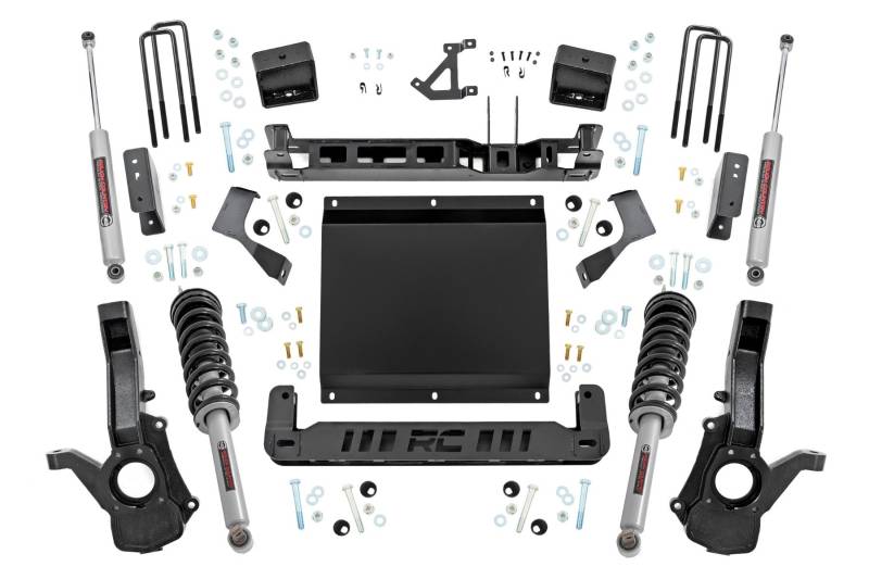 Superior Lift Solution. Looking to add some serious attitude to your third-generation Colorado? Rough Country's 6-Inch Lift Kit is just what you need. This lift kit gives your truck a meaner, lifted, and level stance while providing a smooth ride for unmatched highway and trail performance. It also adds room for larger wheels and tires, so you can make your truck stand out from the crowd. With excellent ride quality and handling characteristics on the road, this lift kit is the perfect way to take your GM to the next level.\ High-Quality Construction. Rough Country's 6-Inch Lift Kit for the 3rd gen Colorado makes it easy to gain that much-needed ground clearance and run up to a 35" tire for that aggressive look you want! Designed to provide excellent ride quality width and factory alignment specs, this kit boasts premium components, giving you a higher quality lift on your truck. The high-quality components and innovative design provide the strength, stability, and up-travel you need to conquer almost any terrain.\ Installation and Warranty. Our 6-Inch Lift Kit is his all-inclusive kit is a total transformation for your mid-size, with durable lifted knuckles, protective skid plate, and all the brackets and hardware needed to set your truck to a factory-like geometry while providing additional ground clearance. When you purchase a Rough Country product, you get more than a great product at an affordable price. You also get peace of mind knowing that your purchase comes with a limited lifetime replacement warranty for manufacturer defects. With Rough Country's industry-leading warranty, you can be sure that your Rough Country lift kit is protected from structural and workmanship damage after the date of purchase.