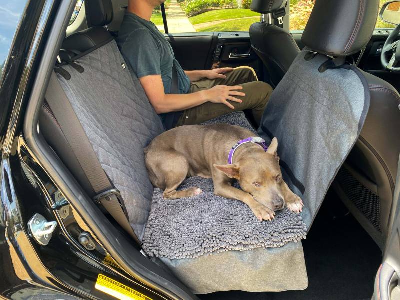 - Hook-and-loop openings for the car seat belts so you can use a car leash if you want.