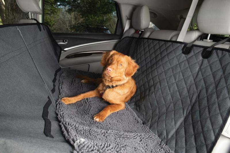 The seating area is made of our cozy and highly absorbent Dirty Dog microfiber fabric, which dogs love to snuggle on. And just like our Dirty Dog Doormats, the extremely absorbent shag features the wicking power of thousands of microfiber strands that soak up many times their weight and gently brush off dirt and grime. Keeping it off your expensive car interior! The hammock feature prevents Sparky from jumping into the front, which can be a major safety issue. The back rest area and hammock panel are made of durable Oxford water-proof fabric so no part of your seating area goes unprotected. The Dirty Dog 3-in-1 Car Seat Cover and Hammock sports 4 snap buckles to keep the hammock securely in place. The non-slip (and non-marking!) rubber bottom prevents the cover from shifting or bunching. Plus, 2 seat anchors tuck into the seat crevices to prevent shifting under paw.