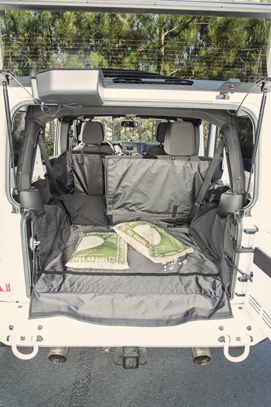 C3 Cargo Cover, No Subwoofer; 07-18 Jeep Wrangler JKU, 4 Door A versatile Jeep deserves versatile accessories. Keeping you on the-go with ease, the patent pending rear Configurable Cargo Covers (C3)offer complete protection for the rear cargo area of your Jeep. By protecting the carpet and plastic trim from damage, scratches, pet claws, dirt, and other debris, it'll stay looking pristine through all your daily tasks. No mess, no stress! A custom made and functional accessory for 2007 to current JKs, this unique design also allows for a pet friendly space, ideal for your pet to rest during long off-road trips. Featuring water resistant material, the split fold feature allows for 40-60 rear seat lowering, and provides coverage with your rear seat up, partially or fully lowered-- flexible and functional! A flip out cover flap keeps dirt from falling into the rear tailgate door gap. The built-in front curtain wall helps to keep items and pets from entering the front seat area. A unique side retention system insures the cover stays securely in place as you load or un-load. Easy to install and remove so you get protection when and where you need it. Rugged Ridge C3 Rear Cargo Covers, ready for whatever.