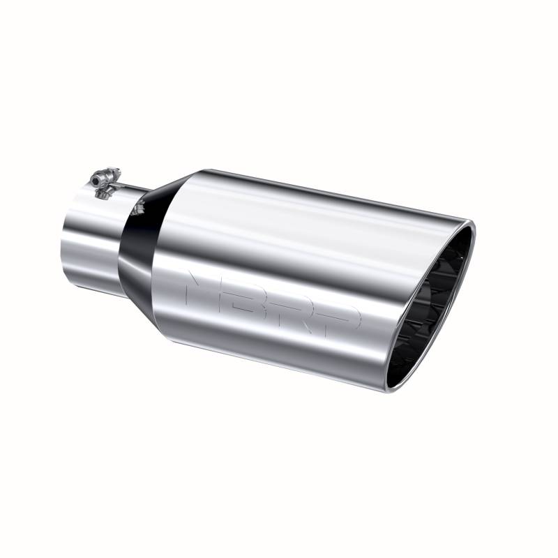 Tip. 8in. O.D.. Rolled End. 5in. inlet 18in. in length. T304. The exhaust tip is the crowning touch to your performance exhaust. It is your opportunity to really show off your personal style. That's why MBRP offers such a wide assortment of high quality, bolt on tips, because everybody has their own idea of style. MBRP offers T304 polished stainless, Black coated, Burnt End and Carbon Fiber tip options in various sizes. The tips are universal fit so be sure to measure your tail pipes outside diameter and match it to the MBRP tip INLET diameter before ordering. No Weld Installation.