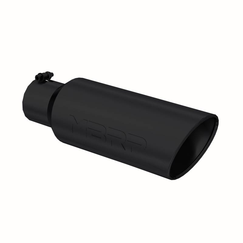 Tip. 6in. O.D.. Rolled end. 4in. inlet 18in. in length. BLK The exhaust tip is the crowning touch to your performance exhaust. It is your opportunity to really show off your personal style. That's why MBRP offers such a wide assortment of high quality, bolt on tips, because everybody has their own idea of style. MBRP offers T304 polished stainless, Black coated, Burnt End and Carbon Fiber tip options in various sizes. The tips are universal fit so be sure to measure your tail pipes outside diameter and match it to the MBRP tip INLET diameter before ordering. No Weld Installation.