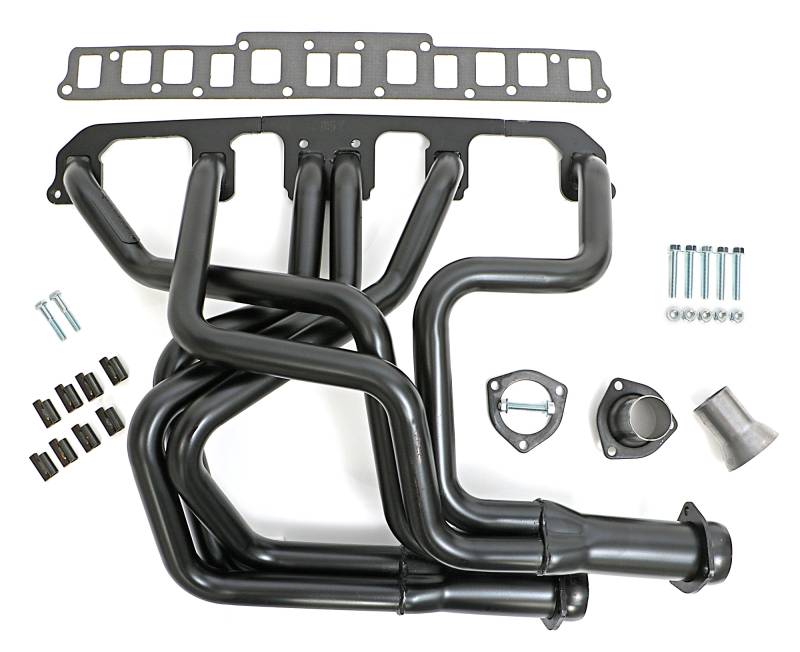Handcrafted, Mild Steel Construction. Long Tube Header Design Provides Excellent Top-End Horsepower and Torque. Ball & Socket Collector Design requires No Gasket, and Allows For More Exhaust System Misalignment than Old School, Gasket-Style Header Collectors Includes All The Necessary Mounting Hardware, Gaskets and Reducers (exhaust adapters) Limted Lifetime Warranty On Construction, Five Year Warranty on Factory-Applied Header Coating!Details