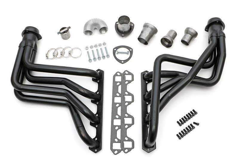 Handcrafted, Mild Steel Construction. Long Tube Header Design Provides Excellent Top-End Horsepower and Torque. Ball & Socket Collector Design requires No Gasket, and Allows For More Exhaust System Misalignment than Old School, Gasket-Style Header Collectors Includes All The Necessary Mounting Hardware, Gaskets and Reducers (exhaust adapters) Limted Lifetime Warranty On Construction, Five Year Warranty on Factory-Applied Header Coating!Details