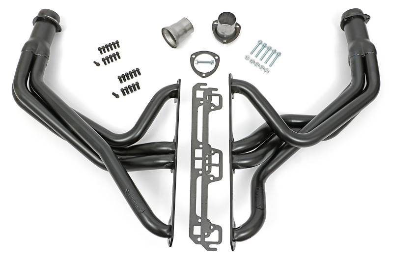 Handcrafted, Mild Steel Construction. Long Tube Header Design Provides Excellent Top-End Horsepower and Torque. Ball & Socket Collector Design requires No Gasket, and Allows For More Exhaust System Misalignment than Old School, Gasket-Style Header Collectors Includes All The Necessary Mounting Hardware, Gaskets and Reducers (exhaust adapters) Limted Lifetime Warranty On Construction, Five Year Warranty on Factory-Applied Header Coating!Details