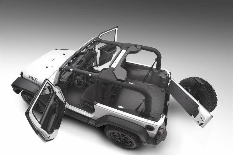 JEEP BEDTRED 07-10 JEEP JK 2DR REAR 5PC CARGO KIT (INC TLGTE & TUB LINER) This fully custom-molded die cut system provides a rugged spray-in look in minutes without the need of any labor intensive prepping or removal of seat brackets or center console. Sold as a 3pc front and 4pc rear, individual pieces can be quickly removed and hosed off after a long day on the trail if desired. The BedTred material is 100 waterproof, wont absorb water, and will never stain, stink, mold or mildew; dries quickly and resists all harsh chemicals. The 1/4-inch polypropylene foam kit, with provided heat shields, insulates your interior from road noise and heat. High End Rugged Spray In Look