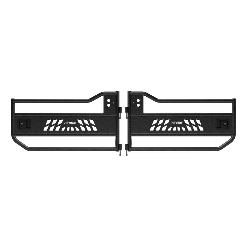 ARIES Jeep tube doors are more than a fancy aftermarket toy for your Jeep Wrangler JL or Jeep Gladiator; they are the key to turning your ride into the ultimate off-roading machine. Their open-concept design and aggressive cutout pattern makes them the perfect accessory for the desert baja and the rock climber alike. To keep your Jeep JL / Gladiator light on its feet over every sand dune, ARIES Jeep tube doors are built to be lightweight while still maintaining superior strength. They are constructed from T6 aluminum alloy, making them strong but far lighter than steel. We also use 100% TIG welds to ensure a solid build and a precise fit on your vehicle. Jeep tube doors are quick to install and easy to remove whenever necessary, using the factory hinge points. They are coated in a durable black powder coat for maximum corrosion resistance, and the unique textured finish of the powder coat helps hide minor scratches and grime from your off-road excursions (NOTE: Before purchasing ARIES Jeep tube doors, it is recommended that you check local and state laws. Some laws may prohibit the use of this product).