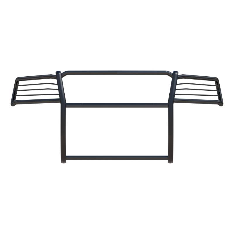 Black Steel Grille Guard, Select Toyota Tundra For the conqueror in every truck, Jeep or SUV owner, the ARIES grille guard offers the tough, trail-ready look you demand. It begins with a one-piece frame of 1/4" thick welded plates and 1-1/2" mandrel-bent tubing for a solid build. Each one is made with a vehicle-specific design for a better fit, easier install and more secure mounting. The side brush guards are custom-bent to contour to the profile of your vehicle, while the mounting brackets are positioned for a no-drill application. This means pre-existing factory holes are used to ensure optimum fitment and less vibration. This particular custom grille guard fits specific years of the Toyota Tundra (see application info to verify). The ARIES grille guard also makes it easy to customize the look of your vehicle. Not only does the crossbar have two pre-drilled holes for mounting aftermarket LED lights, but many of our grille guards are also available in two finish options -- polished stainless steel or semi-gloss black steel. The stainless steel grille guard is made with 304 stainless, being high in nickel content and truly resistant to rust and corrosion. This option comes with a mirror-like polished finish for a definitive shine. The semi-gloss black grille guard is made with high-strength carbon steel for added strength. It features a tough, dual-layer E-coat and black powder coat finish to protect against rust, scratches and the elements. All ARIES grille guards also come with rubber stripping along the risers to protect the frame against scuffs and scratches. One-piece, 1-1/2" diameter, heavy-wall tube design High-strength carbon steel construction Dual-layer E-coat and black powder coat finish for maximum corrosion resistance Two pre-drilled holes in the crossbar for mounting LED light bars or work lights Removable headlight cages for extra protection and a customizable look