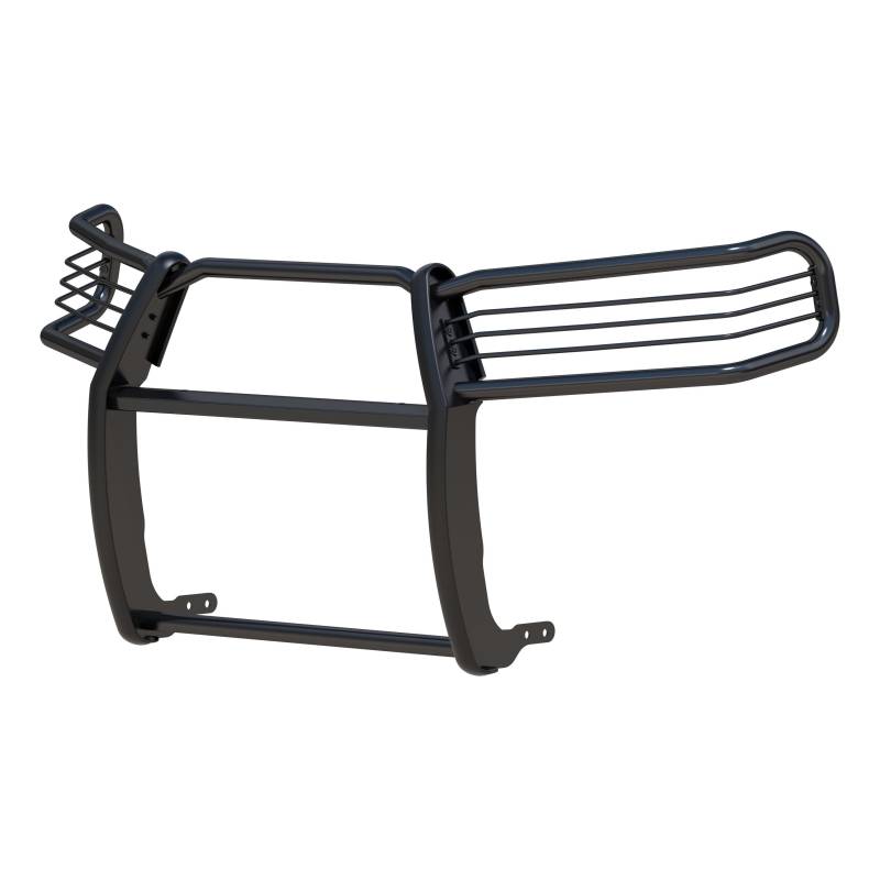 Black Steel Grille Guard, Select Toyota 4Runner For the conqueror in every truck, Jeep or SUV owner, the ARIES grille guard offers the tough, trail-ready look you demand. It begins with a one-piece frame of 1/4" thick welded plates and 1-1/2" mandrel-bent tubing for a solid build. Each one is made with a vehicle-specific design for a better fit, easier install and more secure mounting. The side brush guards are custom-bent to contour to the profile of your vehicle, while the mounting brackets are positioned for a no-drill application. This means pre-existing factory holes are used to ensure optimum fitment and less vibration. This particular custom grille guard fits specific years of the Toyota 4Runner (see application info to verify). The ARIES grille guard also makes it easy to customize the look of your vehicle. Not only does the crossbar have two pre-drilled holes for mounting aftermarket LED lights, but many of our grille guards are also available in two finish options -- polished stainless steel or semi-gloss black steel. The stainless steel grille guard is made with 304 stainless, being high in nickel content and truly resistant to rust and corrosion. This option comes with a mirror-like polished finish for a definitive shine. The semi-gloss black grille guard is made with high-strength carbon steel for added strength. It features a tough, dual-layer E-coat and black powder coat finish to protect against rust, scratches and the elements. All ARIES grille guards also come with rubber stripping along the risers to protect the frame against scuffs and scratches. One-piece, 1-1/2" diameter, heavy-wall tube design High-strength carbon steel construction Dual-layer E-coat and black powder coat finish for maximum corrosion resistance Two pre-drilled holes in the crossbar for mounting LED light bars or work lights Removable headlight cages for extra protection and a customizable look