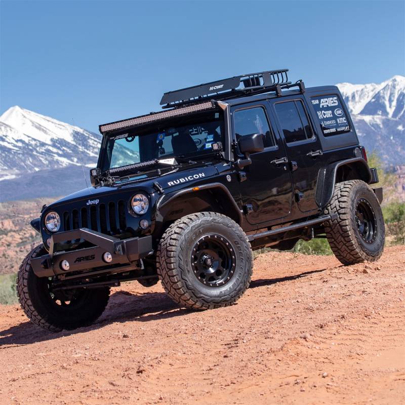 Jeep Wrangler JK Aluminum Front and Rear Inner Fender Liners For those who eat, sleep and breathe off-roading, ARIES fender flares show off your off-road tires better than factory flares, and they feature strong, lightweight aluminum construction to easily stand up to the elements. These front and rear inner fender liners are designed to mount with ARIES Jeep JK fender flares and provide ultimate protection for your engine compartment against mud, water and road debris. ARIES Jeep inner fender liners are constructed from welded aluminum to not only be lightweight and rust-free, but also to offer better strength than the plastic factory fender liners. They are also covered in a highly durable carbide black powder coat finish for maximum corrosion protection. ARIES fender liners install securely in conjunction with ARIES fender flares and include all necessary hardware for a complete installation (some drilling and rivet nut installation required). Jeep fender liners are also available in individual sets for the front or rear. Helps protect engine compartment against mud, water, and other debris. Replaces plastic factory fender liners on the front and rear. Welded aluminum construction to be strong, lightweight, and rust-free. Highly durable carbide black powder coat finish for maximum corrosion resistance. Designed for installation with ARIES fender flares #1500201 and #2500201.