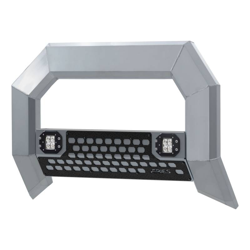 AdvantEDGE 5-1/2" Chrome Aluminum Bull Bar with Lights, Select Ram 2500, 3500 The ARIES AdvantEDGE bull bar is a unique, modern truck bull bar option, featuring a patented design, a highly corrosion-resistant construction and an easy, no-drill installation. For ultimate customization, it also comes with integrated LED lights and two finish options. The AdvantEDGE bull bar with lights is unlike all other bull bars for trucks. It's octagonal tubing and angular, A-frame shape give it an aggressive aftermarket look and complement the look of the modern pickup truck. To maintain a long-lasting, consistent finish, the AdvantEDGE bull bar is constructed from extruded aluminum alloy, making it strong, lightweight and rust-free. It is also protected in a durable powder coat finish for additional corrosion resistance, and it is available in two color choices: chrome powder coat or carbide black powder coat. To add utility and an unmistakable accent to your truck, this bull bar also features flush-mount LED lights. These 2" square lights are constructed with grade-A LED chips and IP68 and IP69K waterproof and dustproof ratings. They feature flood beams and provide 2,200 lumens. The AdvantEDGE bull bar is also available without lights. For fast and easy installation, the AdvantEDGE bull bar with lights is made vehicle-specific. This allows the bull bar to mount securely with no drilling required. This particular bull bar fits specific years of the Ram 2500 or 3500 and Dodge Ram 2500 or Ram 3500 (see application info to verify fitment). It comes with high-strength powder-coated steel brackets and a waterproof wiring harness for a complete installation. The AdvantEDGE bull bar is designed to complement the rest of the AdvantEDGE series, including the AdvantEDGE headache rack and AdvantEDGE side bars.