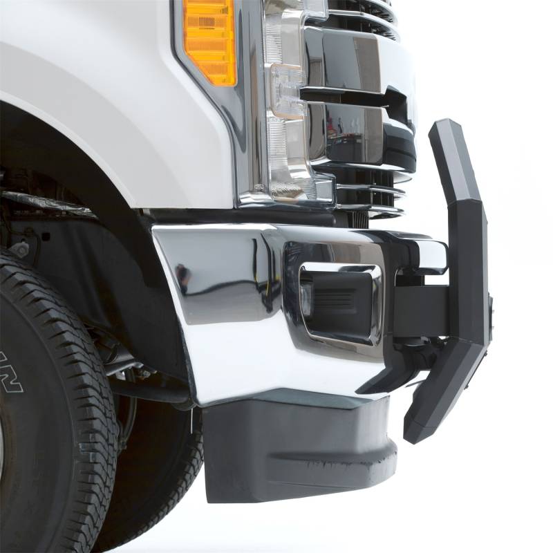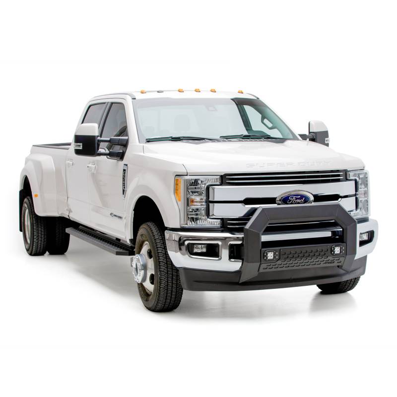 The ARIES AdvantEDGE bull bar is a unique, modern truck bull bar option, featuring a patented design, a highly corrosion-resistant construction and an easy, no-drill installation. For ultimate customization, it also comes with integrated LED lights and two finish options. The AdvantEDGE bull bar with lights is unlike all other bull bars for trucks. Its octagonal tubing and angular, A-frame shape give it an aggressive aftermarket look and complement the look of the modern pickup truck. To maintain a long-lasting, consistent finish, the AdvantEDGE bull bar is constructed from extruded aluminum alloy, making it strong, lightweight and rust-free. It is also protected in a durable powder coat finish for additional corrosion resistance, and it is available in two color choices: chrome powder coat or carbide black powder coat. To add utility and an unmistakable accent to your truck, this bull bar also features flush-mount LED lights. These 2 in. square lights are constructed with grade-A Cree LED chips and IP68 and IP69K waterproof and dustproof ratings. They feature flood beams and provide 2,200 lumens. The AdvantEDGE bull bar is also available without lights. For fast and easy installation, the AdvantEDGE bull bar with lights is made vehicle-specific. This allows the bull bar to mount securely with no drilling required. This particular bull bar fits specific years of the Ford F-250 Super Duty, F-350 Super Duty, F-450 Super Duty and F-550 Super Duty (see application info to verify fitment). It comes with high-strength powder-coated steel brackets and a waterproof wiring harness for a complete installation. The AdvantEDGE bull bar is designed to complement the rest of the AdvantEDGE series, including the AdvantEDGE headache rack and AdvantEDGE side bars.