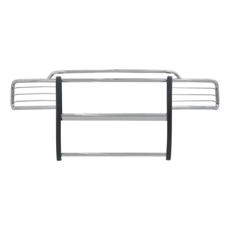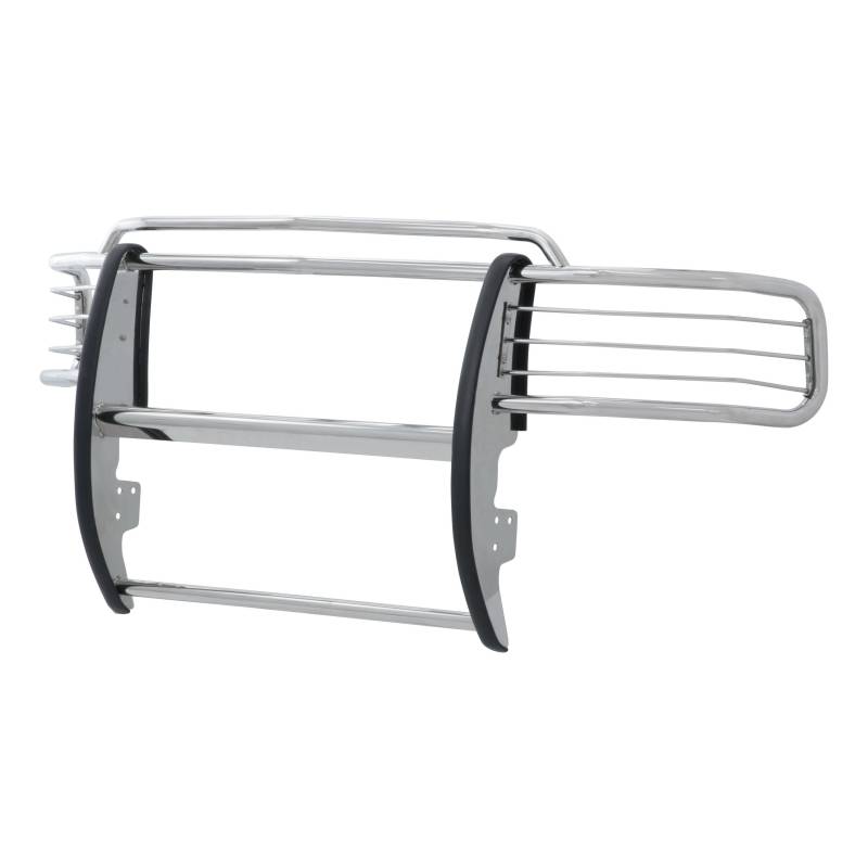Polished Stainless Grille Guard, Select Ford Excursion, F-250, F-350 Super Duty For the conqueror in every truck, Jeep or SUV owner, the ARIES grille guard offers the tough, trail-ready look you demand. It begins with a one-piece frame of 1/4" thick welded plates and 1-1/2" mandrel-bent tubing for a solid build. Each one is made with a vehicle-specific design for a better fit, easier install and more secure mounting. The side brush guards are custom-bent to contour to the profile of your vehicle, while the mounting brackets are positioned for a no-drill application. This means pre-existing factory holes are used to ensure optimum fitment and less vibration. This particular custom grille guard fits specific years of the Ford Excursion, F250 Super Duty and F350 Super Duty (see application info to verify). The ARIES grille guard also makes it easy to customize the look of your vehicle. Not only does the crossbar have two pre-drilled holes for mounting aftermarket LED lights, but many of our grille guards are also available in two finish options -- polished stainless steel or semi-gloss black steel. The stainless steel grille guard is made with 304 stainless, being high in nickel content and truly resistant to rust and corrosion. This option comes with a mirror-like polished finish for a definitive shine. The semi-gloss black grille guard is made with high-strength carbon steel for added strength. It features a tough black powder coat finish to protect against rust, scratches and the elements. All ARIES grille guards also come with rubber stripping along the risers to protect the frame against scuffs and scratches. One-piece, 1-1/2" diameter, heavy-wall tube design 304 stainless steel construction to be strong and truly rust-resistant Mirror-like polished stainless steel finish for a bright, clean accent Two pre-drilled holes in the crossbar for mounting LED light bars or work lights Removable headlight cages for extra protection and a customizable look