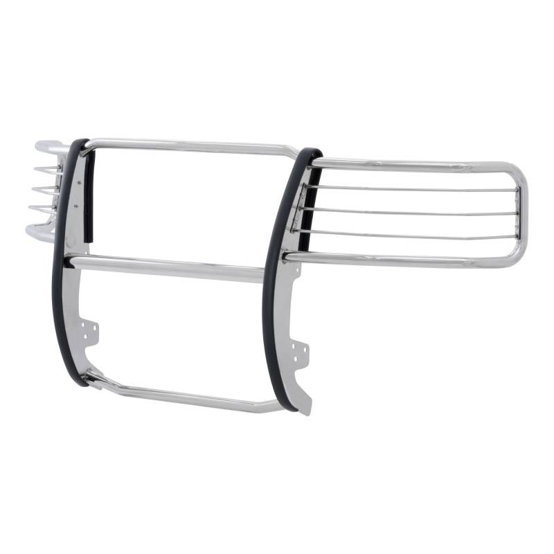 Polished Stainless Grille Guard, Select Chevrolet Silverado 1500 For the conqueror in every truck, Jeep or SUV owner, the ARIES grille guard offers the tough, trail-ready look you demand. It begins with a one-piece frame of 1/4" thick welded plates and 1-1/2" mandrel-bent tubing for a solid build. Each one is made with a vehicle-specific design for a better fit, easier install and more secure mounting. The side brush guards are custom-bent to contour to the profile of your vehicle, while the mounting brackets are positioned for a no-drill application. This means pre-existing factory holes are used to ensure optimum fitment and less vibration. This particular custom grille guard fits specific years of the Chevy Silverado 1500 (see application info to verify). The ARIES grille guard also makes it easy to customize the look of your vehicle. Not only does the crossbar have two pre-drilled holes for mounting aftermarket LED lights, but many of our grille guards are also available in two finish options -- polished stainless steel or semi-gloss black steel. The stainless steel grille guard is made with 304 stainless, being high in nickel content and truly resistant to rust and corrosion. This option comes with a mirror-like polished finish for a definitive shine. The semi-gloss black grille guard is made with high-strength carbon steel for added strength. It features a tough black powder coat finish to protect against rust, scratches and the elements. All ARIES grille guards also come with rubber stripping along the risers to protect the frame against scuffs and scratches. One-piece, 1-1/2" diameter, heavy-wall tube design 304 stainless steel construction to be strong and truly rust-resistant Mirror-like polished stainless steel finish for a bright, clean accent Two pre-drilled holes in the crossbar for mounting LED light bars or work lights Removable headlight cages for extra protection and a customizable look