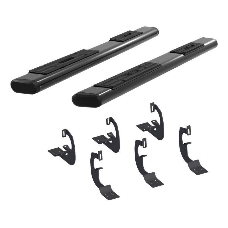 6" x 75" Black Aluminum Oval Side Bars, Select Chevrolet, GMC C, K For solid footing, a comfortable step and a bold look for your truck, ARIES 6" oval side bars are a step up. They are designed to mimic the style of popular original equipment side bars and running boards, featuring two professional finish options, large non-skid step pads and tapered end caps. This particular pair of 6" ovals is made with aluminum alloy to be strong and lightweight. Aluminum construction makes them completely impervious to rust, and for an extra layer of corrosion protection, they come with a durable semi-gloss black powder coat finish. They are also available in polished 304 stainless steel. To protect the interior of the tubes, all 6" oval sides are equipped with hard ABS plastic end caps. The end caps come pre-attached to the tubes and feature a tapered design, lending to the overall OE look of the side bars and providing a professional finishing touch on your truck or SUV. For a sure step every time you climb into your vehicle, ARIES 6" ovals are equipped with extra-wide step pads. The step pads are made from tough polypropylene and provide a generous 5" width. The large, flat surface offers comfortable footing and has a textured surface to prevent slipping, even when wet. The polypropylene construction makes the step pads durable and crack-resistant for long-lasting use. ARIES 6" oval side bars are also made for easy, no-drill installation. The boards themselves feature a track system for versatile application, and they mount using vehicle-specific brackets for a custom fit on certain years of the Chevrolet or GMC C1500, C2500, C3500, K1500, K2500 and K3500 (see application info to verify fitment). The mounting brackets are made from high-strength carbon steel and use pre-existing holes to eliminate drilling during the installation process. 6" wide, OE-style tube with hard ABS plastic end caps Aluminum alloy construction to be lightweight and rust-free Durable semi-gloss black powder coat finish for maximum corrosion resistance Extra-wide, non-skid step pads for safe, comfortable entry and exit Universal track mounting system for easy, secure installation