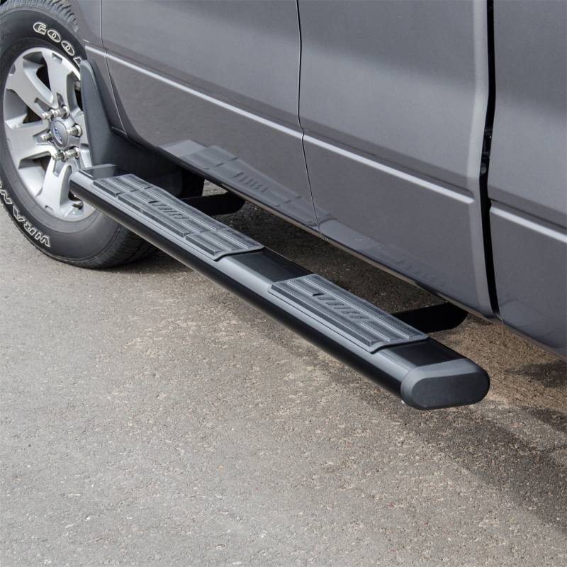 6" x 75" Black Aluminum Oval Side Bars, Select Ford F-150 For solid footing, a comfortable step and a bold look for your truck, ARIES 6" oval side bars are a step up. They are designed to mimic the style of popular original equipment side bars and running boards, featuring two professional finish options, large non-skid step pads and tapered end caps. This particular pair of 6" ovals is made with aluminum alloy to be strong and lightweight. Aluminum construction makes them completely impervious to rust, and for an extra layer of corrosion protection, they come with a durable semi-gloss black powder coat finish. They are also available in polished 304 stainless steel. To protect the interior of the tubes, all 6" oval sides are equipped with hard ABS plastic end caps. The end caps come pre-attached to the tubes and feature a tapered design, lending to the overall OE look of the side bars and providing a professional finishing touch on your truck or SUV. For a sure step every time you climb into your vehicle, ARIES 6" ovals are equipped with extra-wide step pads. The step pads are made from tough polypropylene and provide a generous 5" width. The large, flat surface offers comfortable footing and has a textured surface to prevent slipping, even when wet. The polypropylene construction makes the step pads durable and crack-resistant for long-lasting use. ARIES 6" oval side bars are also made for easy, no-drill installation. The boards themselves feature a track system for versatile application, and they mount using vehicle-specific brackets for a custom fit on certain years of the Ford F-150 (see application info to verify fitment). The mounting brackets are made from high-strength carbon steel and use pre-existing holes to eliminate drilling during the installation process. 6" wide, OE-style tube with hard ABS plastic end caps Aluminum alloy construction to be lightweight and rust-free Durable semi-gloss black powder coat finish for maximum corrosion resistance Extra-wide, non-skid step pads for safe, comfortable entry and exit Universal track mounting system for easy, secure installation