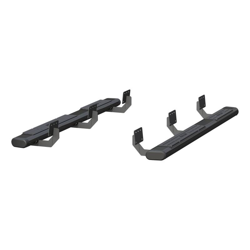 6" x 75" Black Aluminum Oval Side Bars, Select Ram 1500 Quad Cab For solid footing, a comfortable step and a bold look for your truck, ARIES 6" oval side bars are a step up. They are designed to mimic the style of popular original equipment side bars and running boards, featuring two professional finish options, large non-skid step pads and tapered end caps. This particular pair of 6" ovals is made with aluminum alloy to be strong and lightweight. Aluminum construction makes them completely impervious to rust, and for an extra layer of corrosion protection, they come with a durable semi-gloss black powder coat finish. They are also available in polished 304 stainless steel. To protect the interior of the tubes, all 6" oval sides are equipped with hard ABS plastic end caps. The end caps come pre-attached to the tubes and feature a tapered design, lending to the overall OE look of the side bars and providing a professional finishing touch on your truck or SUV. For a sure step every time you climb into your vehicle, ARIES 6" ovals are equipped with extra-wide step pads. The step pads are made from tough polypropylene and provide a generous 5" width. The large, flat surface offers comfortable footing and has a textured surface to prevent slipping, even when wet. The polypropylene construction makes the step pads durable and crack-resistant for long-lasting use. ARIES 6" oval side bars are also made for easy, no-drill installation. The boards themselves feature a track system for versatile application, and they mount using vehicle-specific brackets for a custom fit on certain years of the Ram 1500 Quad cab (see application info to verify fitment). The mounting brackets are made from high-strength carbon steel and use pre-existing holes to eliminate drilling during the installation process. 6" wide, OE-style tube with hard ABS plastic end caps Aluminum alloy construction to be lightweight and rust-free Durable semi-gloss black powder coat finish for maximum corrosion resistance Extra-wide, non-skid step pads for safe, comfortable entry and exit Universal track mounting system for easy, secure installation