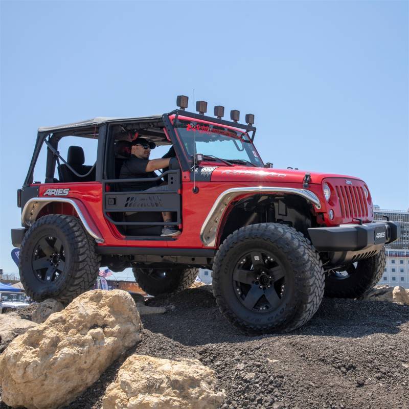 ARIES Jeep tube doors are more than a fancy aftermarket toy for your Wrangler JK; they are the key to turning your ride into the ultimate off-roading machine. Their open-concept design and aggressive cutout pattern makes them the perfect accessory for the desert baja and the rock climber alike. To keep your Jeep JK light on its feet over every sand dune, ARIES Jeep tube doors are built to be lightweight while still maintaining superior strength. They are constructed from T6 aluminum alloy, making them strong but far lighter than steel. We also use 100% TIG welds to ensure a solid build and a precise fit on your vehicle. Jeep tube doors are quick to install and easy to remove whenever necessary, using the factory hinge points. They are coated in a durable black powder coat for maximum corrosion resistance, and the unique textured finish of the powder coat helps hide minor scratches and grime from your off-road excursions (NOTE: Before purchasing ARIES Jeep tube doors, it is recommended that you check local and state laws. Some laws may prohibit the use of this product).
