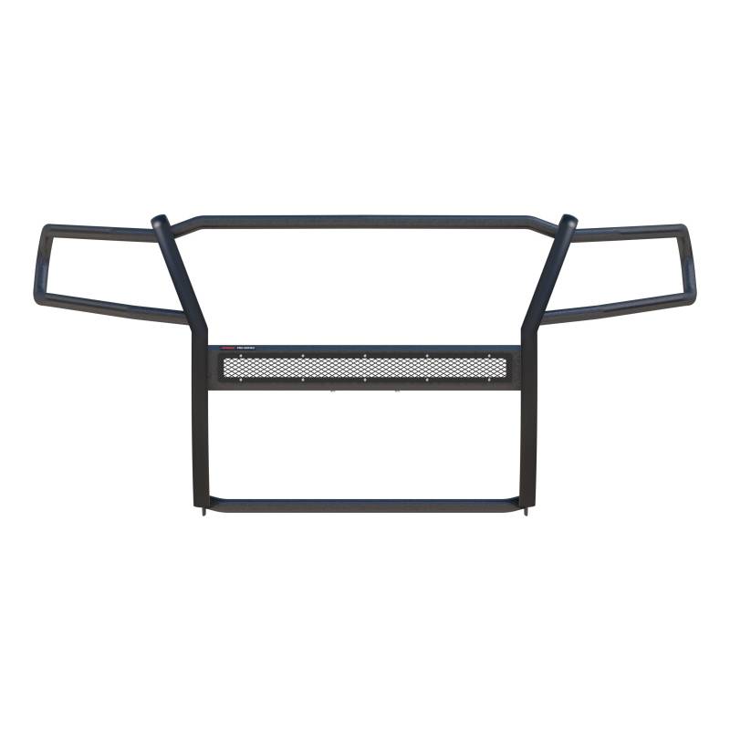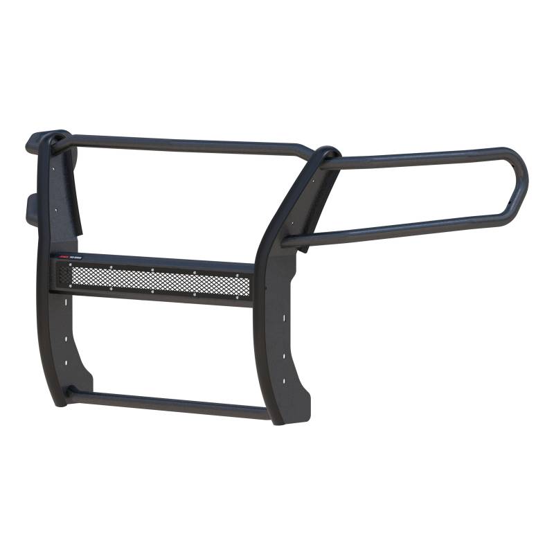 Pro Series Black Steel Grille Guard, Select Chevrolet Colorado, GMC Canyon The ARIES Pro Series grille guard is unlike any other grille guard or brush guard on the road today because of its patented center crossbar. The ARIES Pro Series grille guard has a unique center crossbar that is able to house an LED light bar, allowing you to truly set your truck apart from all others. Rather than using a set of light clips or forcing you to drill holes into the frame, the aerodynamic crossbar of the Pro Series grille guard is the light bar housing itself. It uses a 30" slotted channel bracket to accept one or more single-row light bars (light bars not included; some 30" light bars may not fit the channel bracket). The crossbar mount can also articulate, allowing you to position the light beam at any angle you prefer. Integrating the channel mount into the crossbar housing also keeps the light bar protected from the elements. To further stylize your truck, the Pro Series grille guard also comes with an interchangeable grille guard cover plate. Included with each grille guard is a black mesh cover plate that easily bolts on and provides added security for your aftermarket lights. The mesh cover plate can be swapped out with other cover plate options, including five different styles and two finishes. Solid construction should be an essential feature of any grille guard, and the Pro Series grille guard is more than qualified. It has a one-piece design of 1/4" thick welded plates and 1-1/2" mandrel-bent carbon steel tubing. We also finish each Pro Series grille guard in a highly durable, dual-layer E-coat and textured black powder coat, giving it resilience to rust and scratches. This unique finish also helps hide minor scratches and grime to maintain a clean look. ARIES Pro Series grille guards are made vehicle-specific for seamless integration with the factory bumper and an easy, no-drill installation. This grille guard fits select model years of the Chevrolet Colorado and GMC Canyon (see application info to verify fitment). Patented crossbar houses a single-row LED light bar (light bar not included) Interchangeable cover plate protects light bar and offers easy customization Channel-style bracket accepts one or multiple light bars Articulating bracket allows light to be mounted at a custom angle Textured black powder coat easily hides minor scratches and grime
