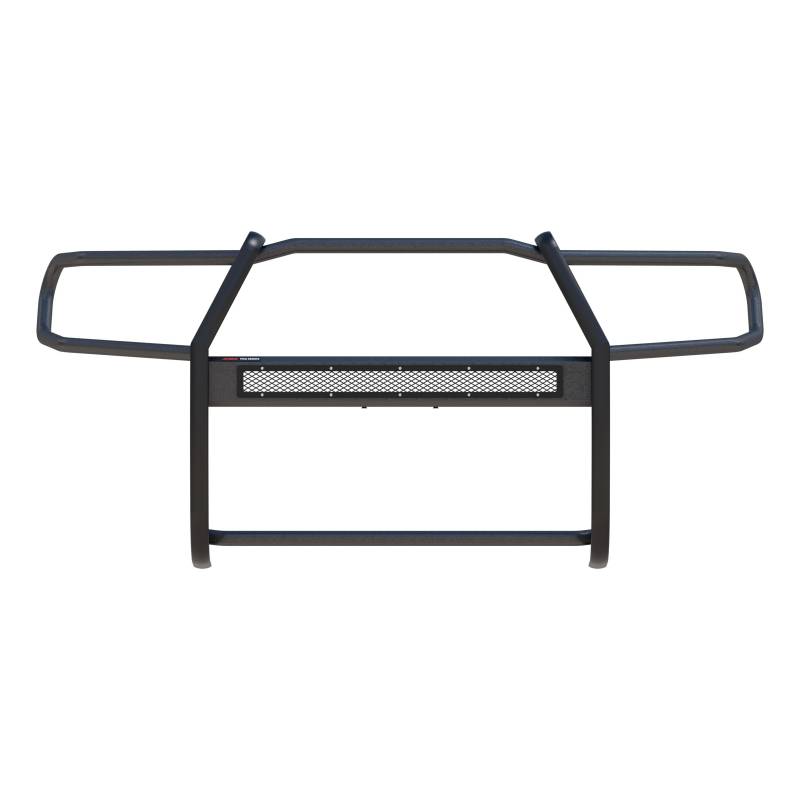 Pro Series Black Steel Grille Guard, Select Toyota Tacoma The ARIES Pro Series grille guard is unlike any other grille guard or brush guard on the road today because of its patented center crossbar. The ARIES Pro Series grille guard has a unique center crossbar that is able to house an LED light bar, allowing you to truly set your truck apart from all others. Rather than using a set of light clips or forcing you to drill holes into the frame, the aerodynamic crossbar of the Pro Series grille guard is the light bar housing itself. It uses a 30" slotted channel bracket to accept one or more single-row light bars (light bars not included; some 30" light bars may not fit the channel bracket). The crossbar mount can also articulate, allowing you to position the light beam at any angle you prefer. Integrating the channel mount into the crossbar housing also keeps the light bar protected from the elements. To further stylize your truck, the Pro Series grille guard also comes with an interchangeable grille guard cover plate. Included with each grille guard is a black mesh cover plate that easily bolts on and provides added security for your aftermarket lights. The mesh cover plate can be swapped out with other cover plate options, including five different styles and two finishes. Solid construction should be an essential feature of any grille guard, and the Pro Series grille guard is more than qualified. It has a one-piece design of 1/4" thick welded plates and 1-1/2" mandrel-bent carbon steel tubing. We also finish each Pro Series grille guard in a highly durable, dual-layer E-coat and textured black powder coat, giving it resilience to rust and scratches. This unique finish also helps hide minor scratches and grime to maintain a clean look. ARIES Pro Series grille guards are made vehicle-specific for seamless integration with the factory bumper and an easy, no-drill installation. This grille guard fits select model years of the Toyota Tacoma (see application info to verify fitment). Patented crossbar houses a single-row LED light bar (light bar not included) Interchangeable cover plate protects light bar and offers easy customization Channel-style bracket accepts one or multiple light bars Articulating bracket allows light to be mounted at a custom angle Textured black powder coat easily hides minor scratches and grime