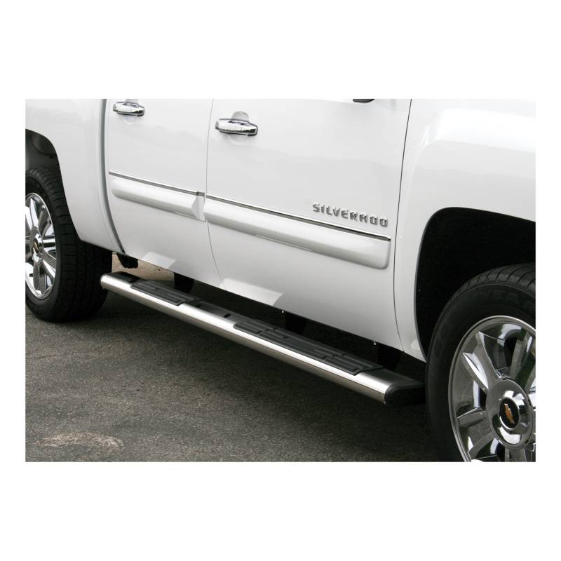 6" x 75" Polished Stainless Oval Side Bars (No Brackets) For solid footing, a comfortable step and a bold look for your truck, ARIES 6" oval side bars are a step up. They are designed to mimic the style popular original equipment side bars and running boards, featuring two professional finish options, large non-skid step pads and tapered end caps. This particular pair of 6" ovals is made with 304 stainless steel, meaning they are high in nickel content to be truly resistant to rust and corrosion. For a lasting shine and a bright accent on your vehicle, they are given a highly polished, mirror-like finish. They are also available in semi-gloss black powder-coated aluminum. To protect the interior of the tubes, all 6" oval sides are equipped with hard ABS plastic end caps. The end caps come pre-attached to the tubes and feature a tapered design, lending to the overall OE look of the side bars and providing a professional finishing touch on your truck or SUV. For a sure step every time you climb into your vehicle, ARIES 6" ovals are equipped with extra-wide step pads. The step pads are made from tough polypropylene and provide a generous 5" width. The large, flat surface offers comfortable footing and has a textured surface to prevent slipping, even when wet. The polypropylene construction makes the step pads durable and crack-resistant for long-lasting use. ARIES 6" oval side bars are also made for easy, no-drill installation. The boards themselves feature a track system for versatile application, and they mount using vehicle-specific brackets for a custom fit. The mounting brackets are made from high-strength carbon steel and use pre-existing holes to eliminate drilling during the installation process (NOTE: Mounting brackets for these side bars are sold separately. See the application information to find which brackets and side bars fit your vehicle). 6" wide, OE-style tube with hard ABS plastic end caps 304 stainless steel construction to be strong and truly rust-resistant Mirror-like polished stainless steel finish for a bright, clean accent Extra-wide, non-skid step pads for safe, comfortable entry and exit Universal track mounting system for easy, secure installation