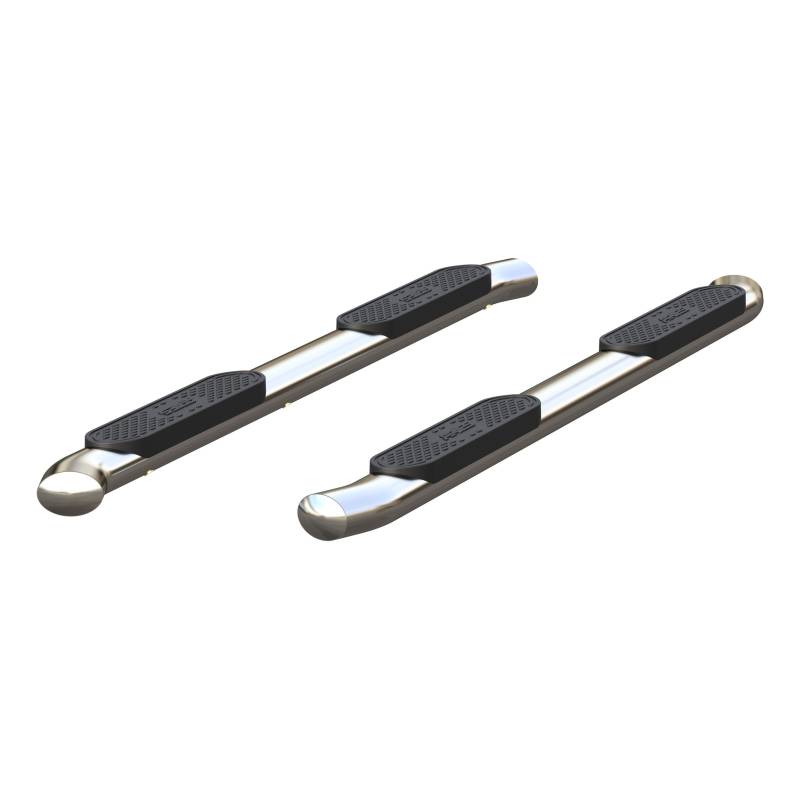 4" Polished Stainless Oval Side Bars, Select Silverado, Sierra 1500 Extended Cab When you start and end your day turning the ignition of your truck, unreliable footing just is not an option. You need a step that can bear weight with ease, provide comfortable footing and look good doing it. ARIES 4" oval side bars are sleek, strong and custom-fitted to be a highly functional extension of your truck. ARIES 4" oval side bars are made with strong 4" elliptical tubing and are available in two different finish options to allow you full customization: polished stainless steel and black powder coat carbon steel. This set of side bars is constructed from 304 stainless steel, meaning high nickel content to be truly stainless. They easily resist rust and corrosion and feature a highly polished finish that is made to last. Something that sets the ARIES 4" oval side bar apart from all others is its blended end caps and OE-style bends. Rather than capping our side bars with a plastic cap, we offer a blended end cap for a smooth, finished appearance. We also equip the ends with a special 20-degree bend and original equipment styling to perfectly contour to your vehicle. ARIES 4" oval side bars are fitted with raised step pads to provide a wide stepping surface. The polypropylene construction will not crack over time, and because it has a textured grip, the surface is highly resistant to slips and skids, even when wet. Installation of ARIES 4" oval side bars is quick and easy with custom-fitted mounting brackets and no drilling necessary. These nerf bars fit select model years of the Chevrolet Silverado 1500 and GMC Sierra 1500 extended cab (see application info to verify fitment). 20-degree bends to contour to the body of the vehicle Seamless, welded end caps for a superior, finished look Raised, custom, non-skid step pads for safe, comfortable entry and exit 304 stainless steel construction to be strong and truly rust-resistant Mirror-like polished stainless steel finish for a bright, clean accent