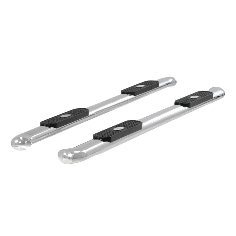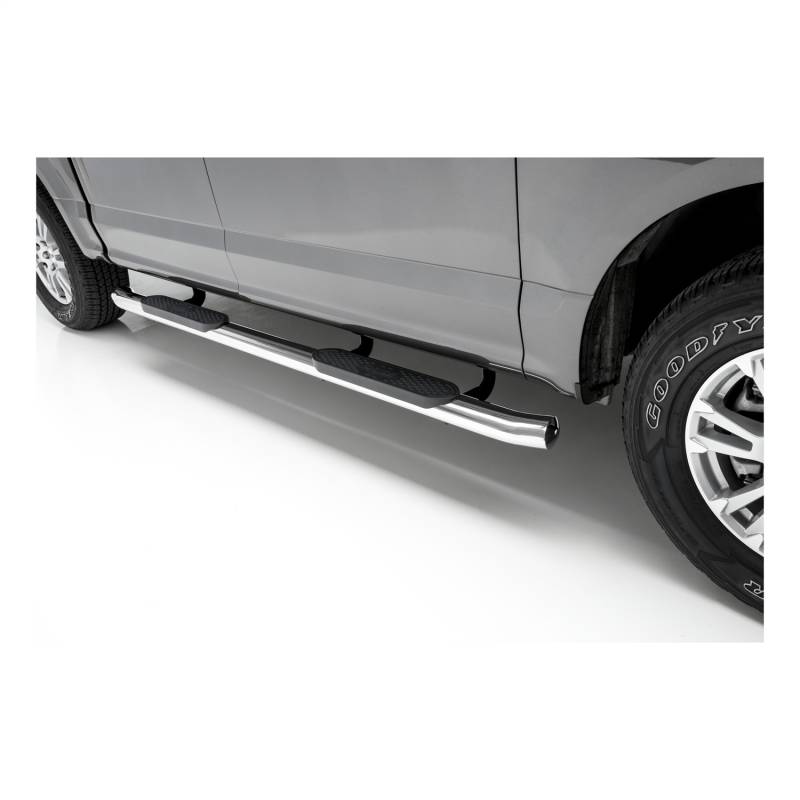 4" Polished Stainless Oval Side Bars, Select Ford F150, F250, F350, F450, F550 When you start and end your day turning the ignition of your truck, unreliable footing just is not an option. You need a step that can bear weight with ease, provide comfortable footing and look good doing it. ARIES 4" oval side bars are sleek, strong and custom-fitted to be a highly functional extension of your truck. ARIES 4" oval side bars are made with strong 4" elliptical tubing and are available in two different finish options to allow you full customization: polished stainless steel and black powder coat carbon steel. This set of side bars is constructed from 304 stainless steel, meaning high nickel content to be truly stainless. They easily resist rust and corrosion and feature a highly polished finish that is made to last. Something that sets the ARIES 4" oval side bar apart from all others is its blended end caps and OE-style bends. Rather than capping our side bars with a plastic cap, we offer a blended end cap for a smooth, finished appearance. We also equip the ends with a special 20-degree bend and original equipment styling to perfectly contour to your vehicle. ARIES 4" oval side bars are fitted with raised step pads to provide a wide stepping surface. The polypropylene construction will not crack over time, and because it has a textured grip, the surface is highly resistant to slips and skids, even when wet. To add an extra element of class to our oval sides, we also fit each one with a stainless steel insignia bearing the ARIES name. Installation of ARIES 4" oval side bars is quick and easy with custom-fitted mounting brackets and no drilling necessary. These nerf bars fit select model years of the Ford F-150, F-150 Lightning, F-250 Super Duty, F-350 Super Duty, F-450 Super Duty and F-550 Super Duty (see application info to verify fitment). 20-degree bends to contour to the body of the vehicle Seamless, welded end caps for a superior, finished look Raised, custom, non-skid step pads for safe, comfortable entry and exit 304 stainless steel construction to be strong and truly rust-resistant Mirror-like polished stainless steel finish for a bright, clean accent