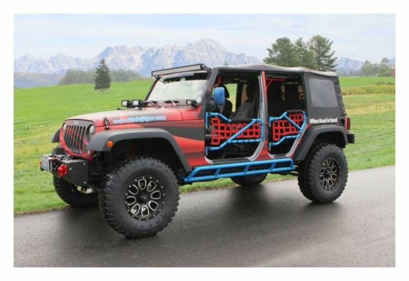 The Steinjager Tubular Trail Door's main construction is 1.25" and custom machined door hinges allow for easy switching from your stock door to the tube door. The quick release detent pin is held to the door with a weather resistant cable to ensure you don't lose your door latch pin. Please note, because of tolerances between Jeeps, you may have to slightly adjust or shim the factory striker for the latch to function smoothly. These doors accept our bolt on mirror kit but do not come with them. Includes one pair of rear tube doors.