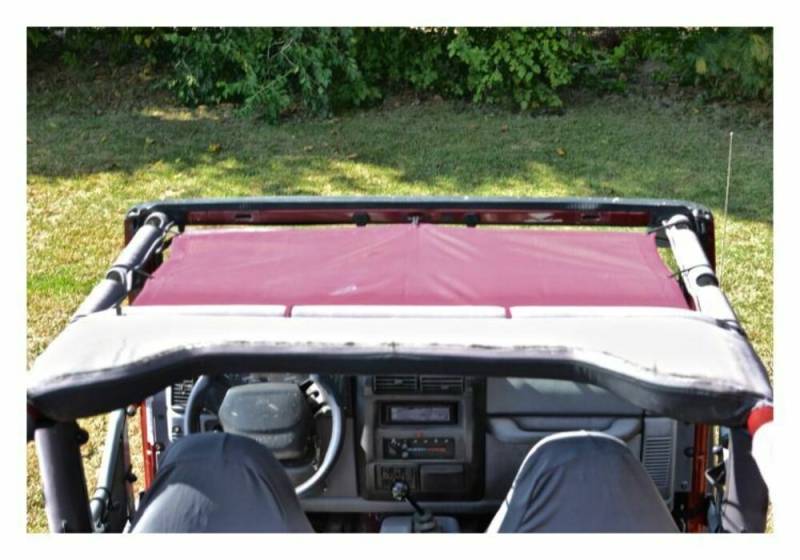 The Steinjager Teddy Top Solar Screen Cover easily installs in minutes with the use of the supplied bungee balls. There are cut-outs in the top to allow you to leave this cover on even when you have your factory top installed. Covers the front seats only.