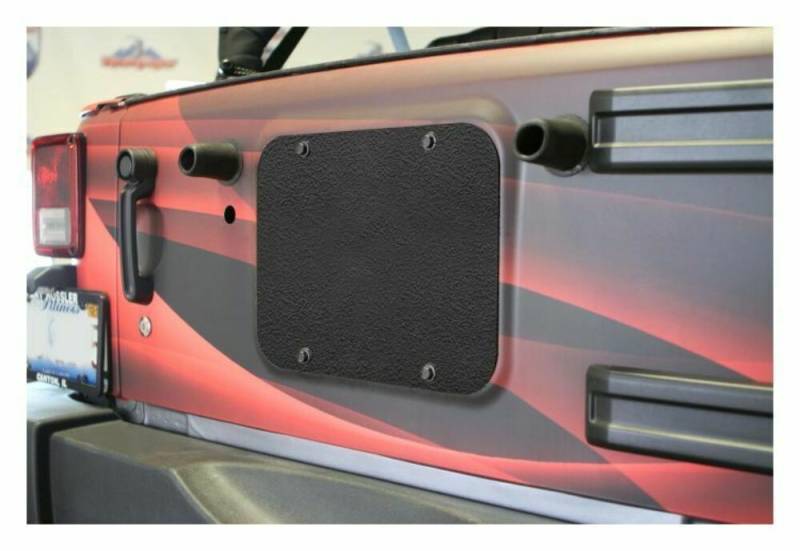 The Steinjager Spare Tire Delete Plate is cut from 1/8 inch steel plate and powdercoated black to hold up to your on and off road abuse. It is completely manufactured, powdercoated and laser etched in the USA in our manufacturing facility. If you have removed the factory spare tire carrier you know the unsightly openings in the factory tailgate. Simply bolt on the Steinjager Spare Tire Carrier Delete Plate to clean up the look of your Jeep. Factory bolts must be used to install this delete plate.
