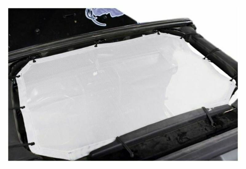 The Steinjager Teddy Top Solar Screen Cover easily installs in minutes with the use of the supplied bungee balls. There are cut-outs in the top to allow you to leave this cover on even when you have your factory top installed. The Steinjager solar Teddy Top also fits with the Steinjager Cargo Net. Covers the front seats only.