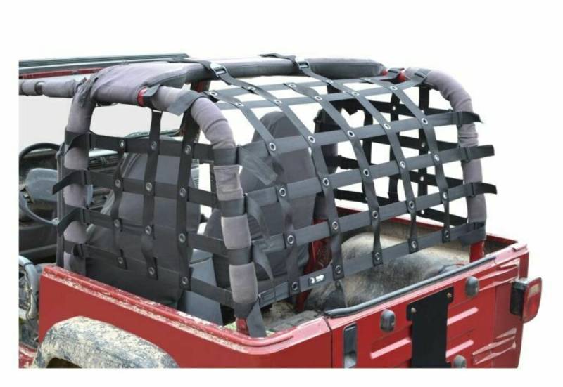 This Teddy Top Cargo Net covers the back half and sides of your TJ. The open design allows for great visibility while keeping your cargo inside the vehicle. The simple, yet effective, double back straps allow for adjustability and easy installation. The Teddy Top Cargo Net can stay in place with the top up so there is no need to remove it once its installed.
