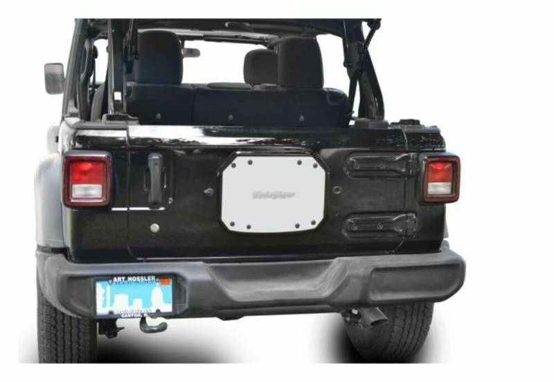 The Steinjager Spare Tire Delete Plate is cut from 1/8 inch steel plate and powdercoated black to hold up to your on and off road abuse. It is completely manufactured, powdercoated and laser etched in the USA in our manufacturing facility. If you have removed the factory spare tire carrier you know the unsightly openings in the factory tailgate. Simply bolt on the Steinjager Spare Tire Carrier Delete Plate to clean up the look of your Jeep. Factory bolts must be used to install this delete plate.