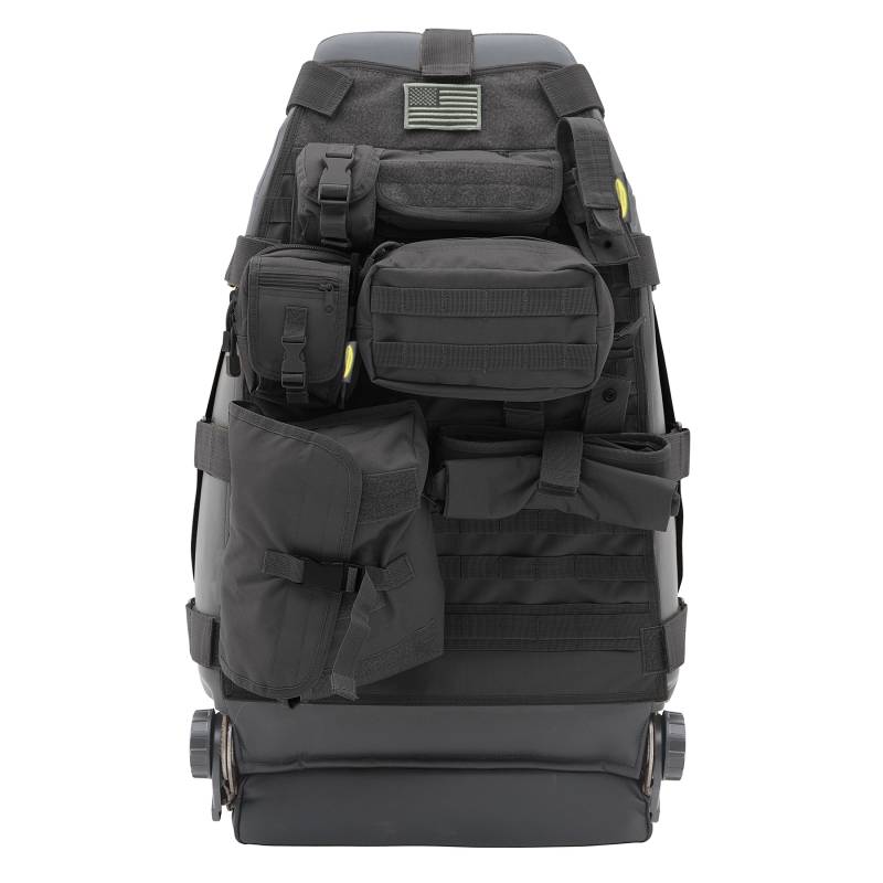 The G.E.A.R. Seat Cover from Smittybilt is the ultimate storage solution for your off-road adventures. Made from durable 600 Denier polyester with a PVC liner, it’s fully adjustable and designed to withstand the toughest conditions. Featuring seven secure pouches that use a Molle/PALS restraint system, the G.E.A.R. ensures your gear stays in place no matter the terrain. UV stable and available in black, coyote tan, and olive drab green, this seat cover offers superior functionality and style. *If your seat is equipped with side airbags, be sure to leave the Velcro band loose for safety.