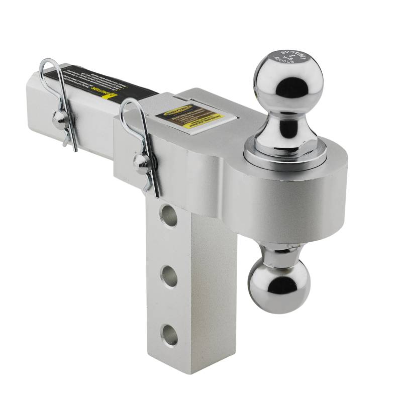 The Smittybilt 6" Adjustable Drop Hitch is the perfect lightweight and reliable towing solution, crafted from high-grade 6061 aluminum for strength and durability. Featuring reversible 2" and 2-5/16" steel balls, it fits all 2" receivers and offers a Class III rating with up to 5,000 lbs GTW and 500 lbs tongue weight capacity. The polished aluminum finish and stainless steel locking pins ensure both corrosion resistance and secure adjustments, making it a versatile choice for all your towing needs.