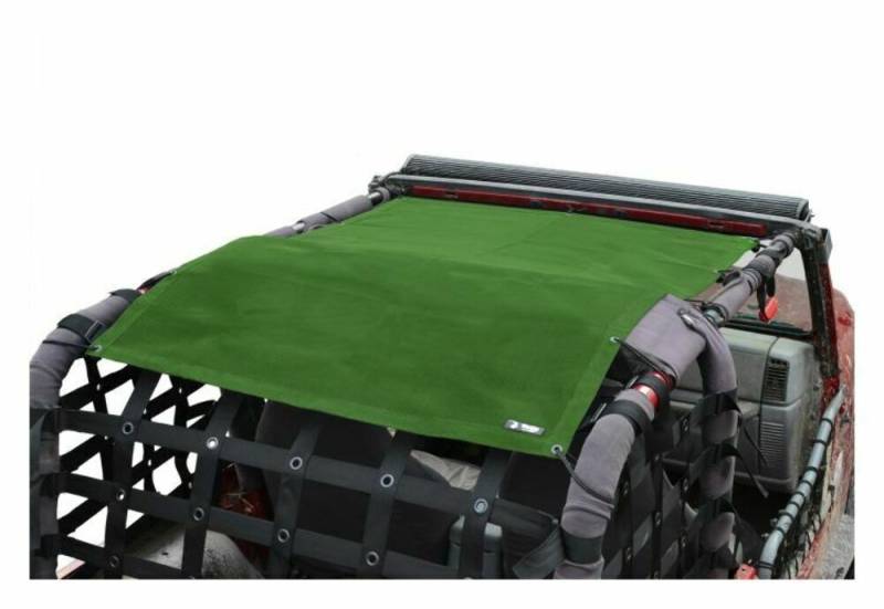 The Steinjager Teddy Top Solar Screen Cover easily installs in minutes with the use of the supplied bungee balls. There are cut-outs in the top to allow you to leave this cover on even when you have your factory top installed. Covers front and rear seats.
