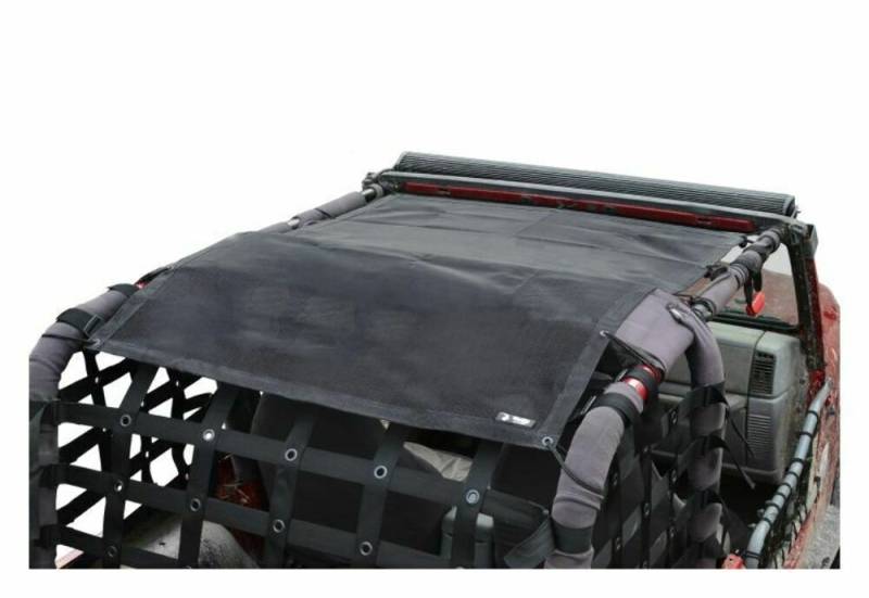 The Steinjager Teddy Top Solar Screen Cover easily installs in minutes with the use of the supplied bungee balls. There are cut-outs in the top to allow you to leave this cover on even when you have your factory top installed. Covers front and rear seats.