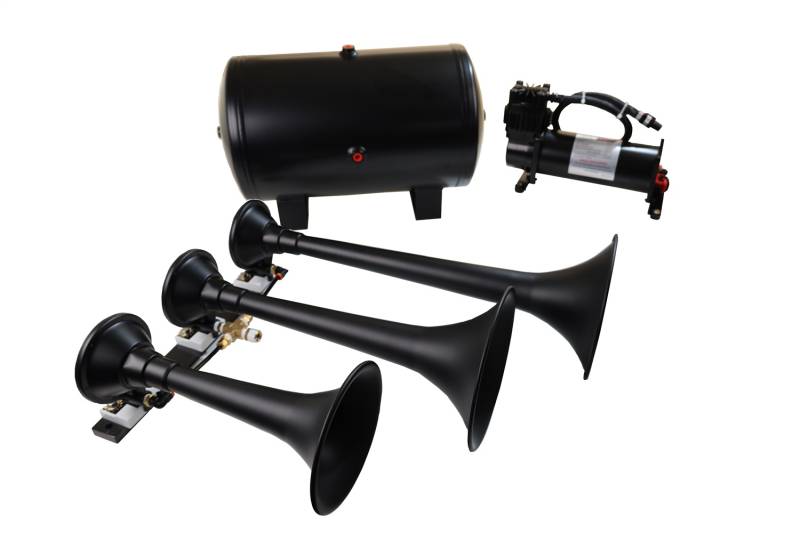 Pro Blaster Triple Horn Kit; Black; Includes Horns PN[730]/ 150 PSI Waterproof 100% Duty Cycle Air Compressor PN[6450RC]/ 5.0 Gallon Air Tank PN[6450RT];
