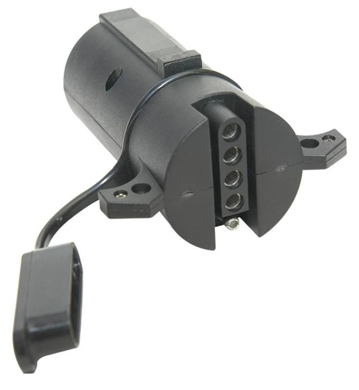Quickly convert your 7 blade vehicle side connector to a 5 flat trailer end connector. This adapter includes a dust cover for the 4 Flat to help prevent corrosion.