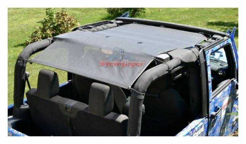 The Steinjager Teddy Top Solar Screen Cover easily installs in minutes with the use of the supplied bungee balls. There are cut-outs in the top to allow you to leave this cover on even when you have your factory top installed. Covers front and rear seats.