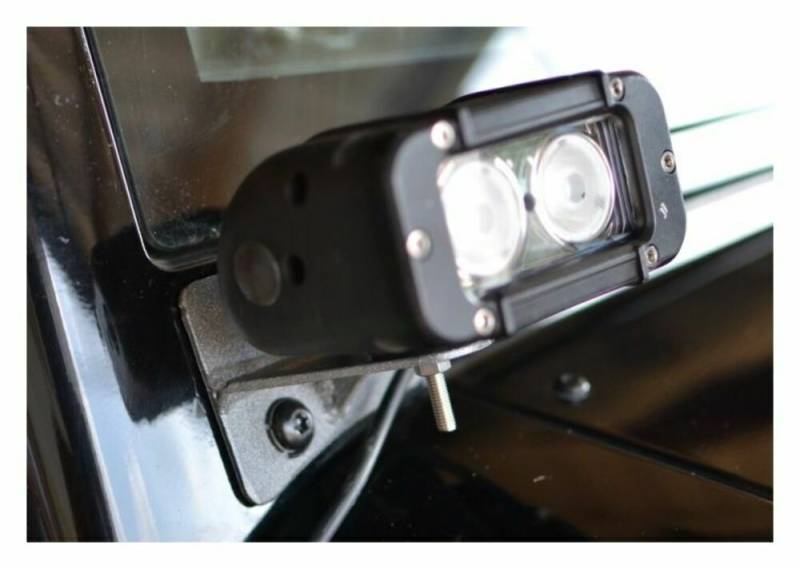 Add some additional light to your JK with the Steinjager lower windshield light and mounting bracket kit. These brackets mount using the factory bolts and are designed to match the factory contours. Each LED light contains two 10 watt elements and provide approximately 2000Lm each. The aluminum housing is waterproof and has built-in adjustability to allow you to aim the light in your desired direction This lights come with approximately 18 inches of wire with bare ends. You will need to provide your own switches, relays, fuses, connectors and additional wiring for the lights to be functional.