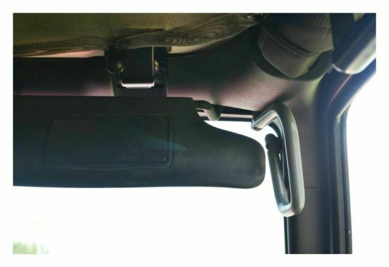With an easy 10 minute install, you have sturdy, rigid grab handles to assist you getting in and out of your Jeep or a place to hold on to when you are on the toughest of trails. The solid bar design guarantees you years of use without any headaches. They are completely manufactured in the USA. Steinjager Grab Handles are designed to not interfere with the visors. Front LH and RH bars only.